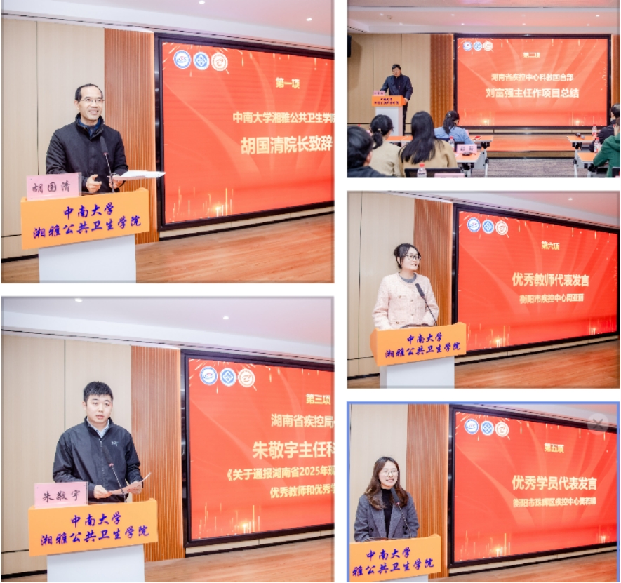 院长胡国清、党委委员尹逊强出席结业典礼。来自湖南省各市州疾控中心科教部门的负责人、优秀教师代表与60名项目学员共同齐聚,见证这一重要时刻。结业典礼由尹逊强主持。