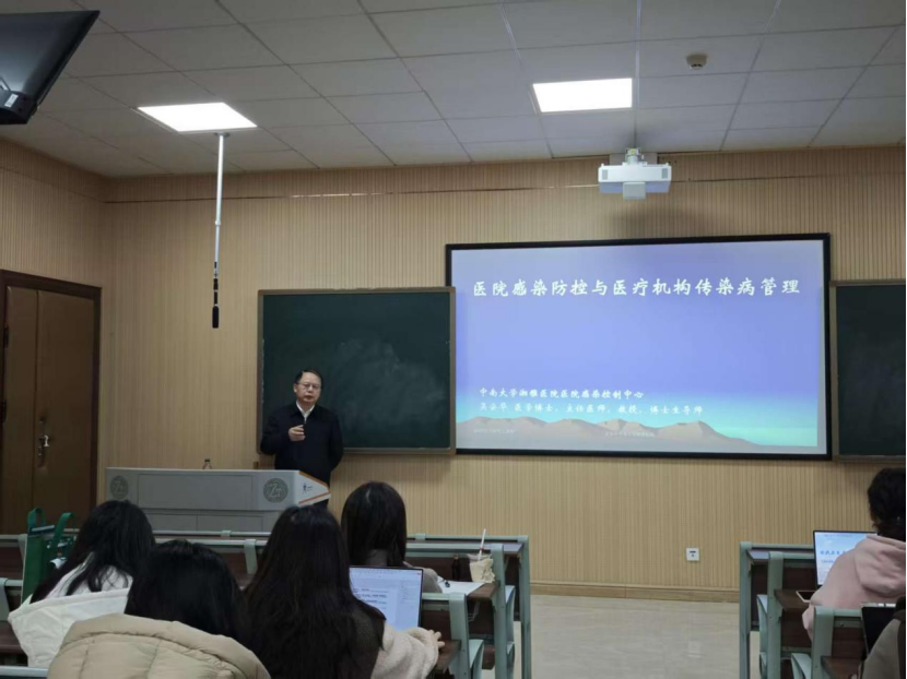 课程内容全面贯穿中国公共卫生实践的核心环节,系统覆盖从宏观政策到具体技术的全链条内容。研究生聆听了湖南省卫生健康委员会副主任刘激扬对地方医改实践的深度解析,跟随湖南省疾病预防控制中心主任高立冬探讨健康优先发展战略与全球健康议题。在疾病防控前沿领域,湖南省疾控中心的罗垲炜、金东辉等主任医师分享了传染病应急处置与慢性病防控的国家实践经验。环境健康、职业卫生、营养与食品安全等专业领域的实践挑战,由周纯良、罗磊、梁进军等省市疾控中心专家带来最新案例与解决方案。课程同时聚焦特殊人群健康与跨界融合创新:湖南省妇幼保健院主任吴颖岚讲授妇女儿童保健实践要点,湘雅医院感控权威吴安华教授剖析医疗机构内感染防控的关键问题;企业公共卫生实践则由三诺生物传感股份有限公司的李少波先生分享产业视角下的实践路径。此外,全球健康实践、公共卫生监测、卫生检验检疫等专题,由昆明医科大学全球健康中心主任方菁教授、湖南省疾控中心主任医师刘富强与陈东洋等众多权威专家联袂主讲,确保教学内容兼具前瞻性与实践性。